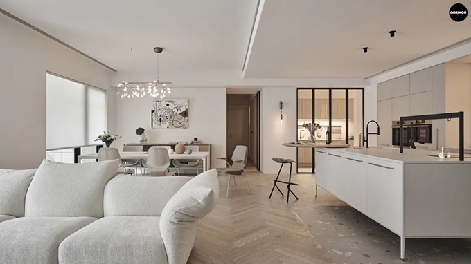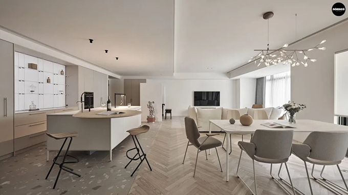 對于大戶型而言,餐廚合一的結(jié)構(gòu),可以做到滿足形式感和設(shè)計感,充分利用空間的同時,也富有檔次和空間規(guī)整。