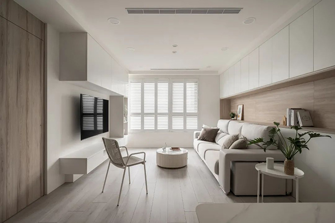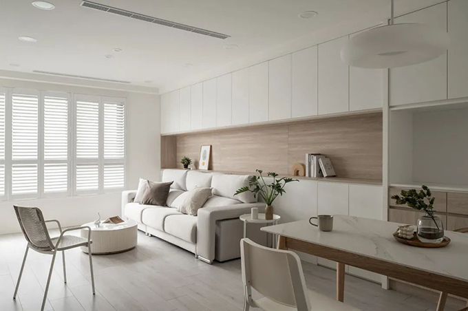 和與電視墻咬合的形式相似,都是增強島臺自身功能的類型,在島臺上設置卡座,從整體造型上來看極具幾何感和藝術氣質從實用的角度看,能更加節(jié)省空間的面積,提高空間的利用效率,讓空間在視野上更加開闊。