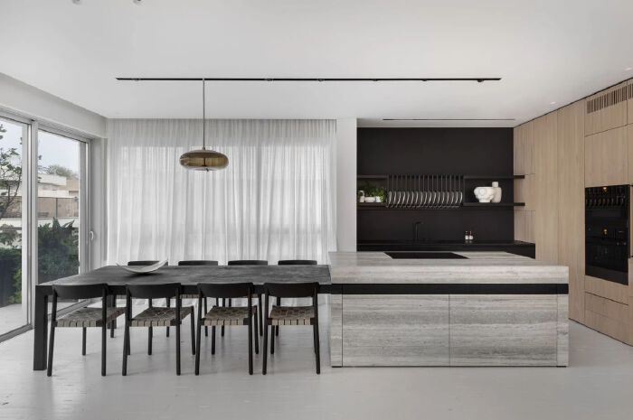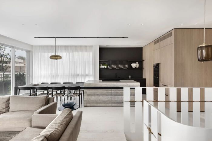 開放式廚房可以給家人提供很重要的情緒價值。擠在小房間里悶頭做飯,與油煙作斗爭更像是一項繁瑣的工作,而不是一種放松。 有時候小廚房想擠下兩個人做飯,轉(zhuǎn)個身都能磕著頭,幫忙常常變成了添亂。久而久之,廚房似乎出了個不成文的規(guī)距,一個人做飯另一個人刷碗。